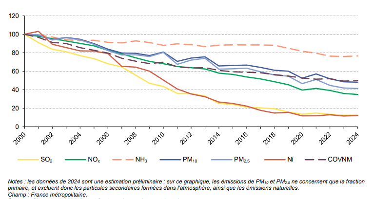 Les concentrations de la plupart des polluants ont diminué sur la période 2000-2024