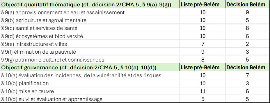 - décision sur l’objectif mondial de matière d’adaptation (GGA),