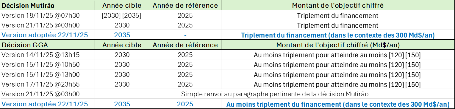 Engagements financiers annoncés en 2025 et lors de la COP-30