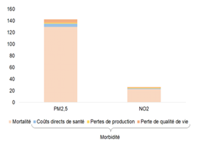 Figure 1. Synthèse des effets sanitaires et économiques de la pollution de l’air – Source : DG Trésor, février 2026