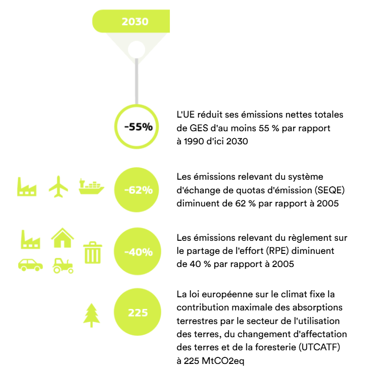 Principaux objectifs climatiques de l’Union européenne – Source : Rapport sur l’état d’avancement de l’action pour le climat – novembre 2025